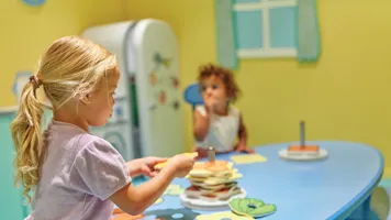 Explore the kitchen and spot what’s cooking inside the oven, and make a sandwich with your favorite ingredients. Then get the giggles as you turn on the laundry machine and watch Daddy Pigs’s shirt rotate inside.
